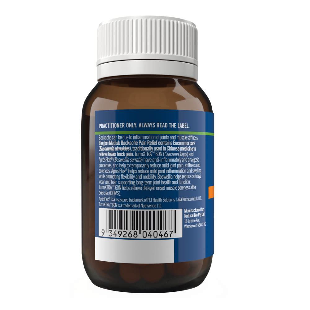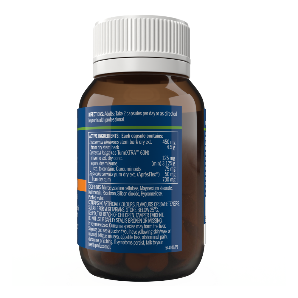 Eucommia ulmoides stem bark dry ext. 450mg from dry stem bark 4.5g Curcuma longa (as TurmXTRA™ 60N) ext. dry conc. 125 mg equiv. dry rhizome (min) 3.75 g std. to contain: Curcuminoids 75 mg Boswellia serrata gum dry ext. (AprèsFlex®) 50 mg from dry gum 700 mg