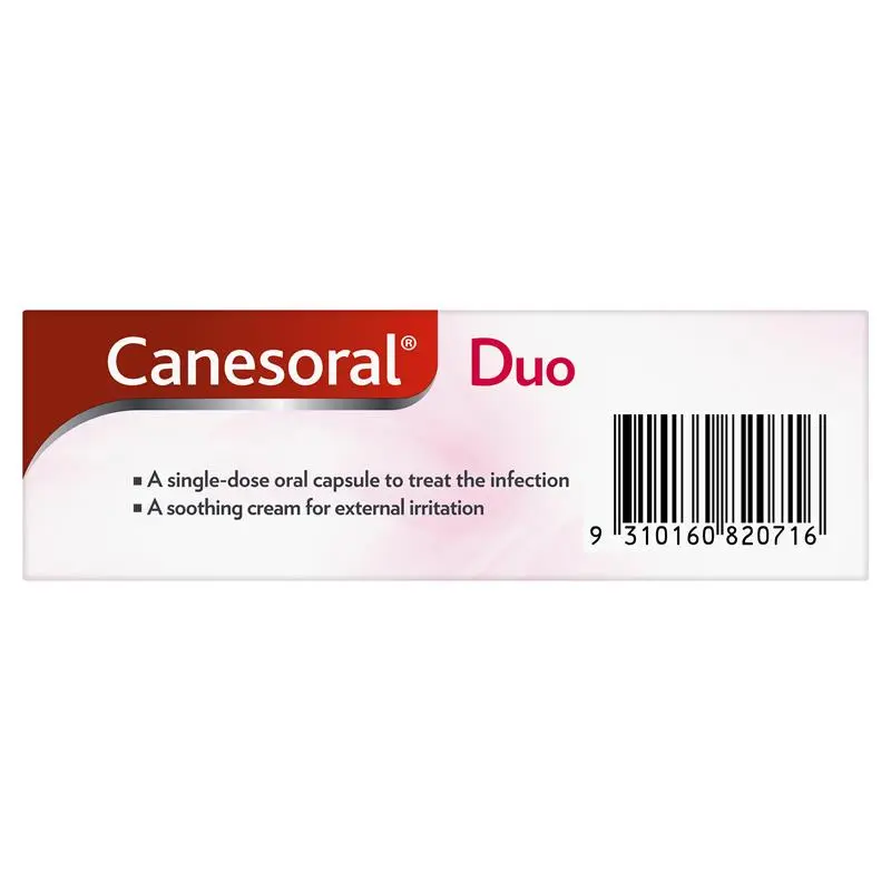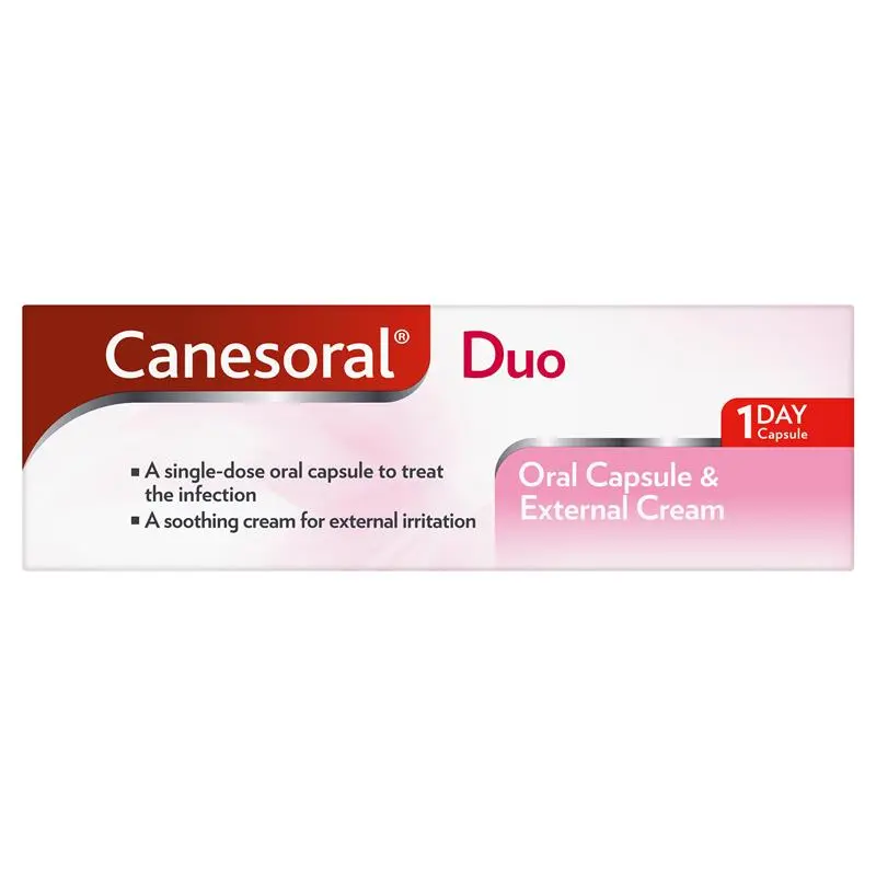 Canesoral Duo is a convenient 2-in-1 answer to thrush relief. Canesoral® Duo contains 1 single-dose oral capsule to effectively treat vaginal thrush (vaginal candidiasis), plus a soothing cream for immediate relief from external itching and soreness. Vaginal thrush is a common infection caused by a yeast-like fungi.
