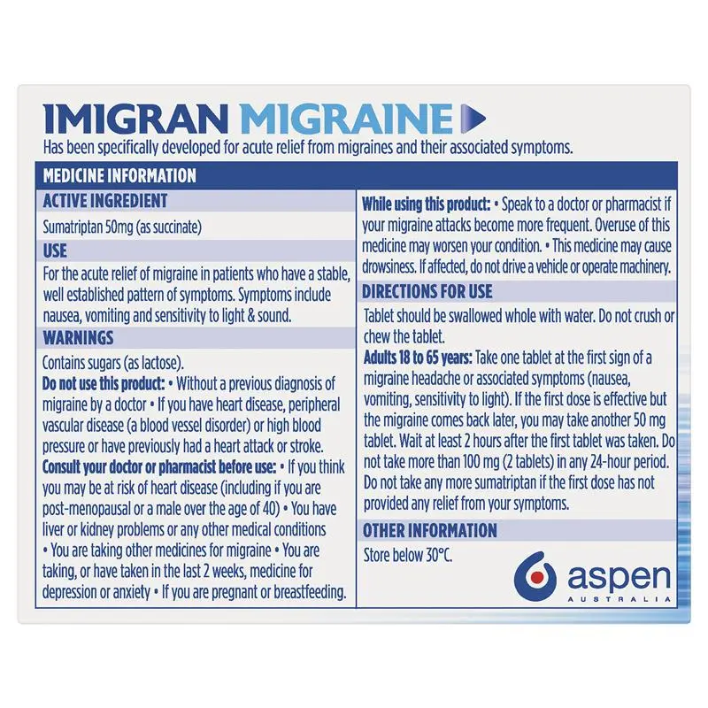 • Imigran® Migraine has been designed specifically for migraines