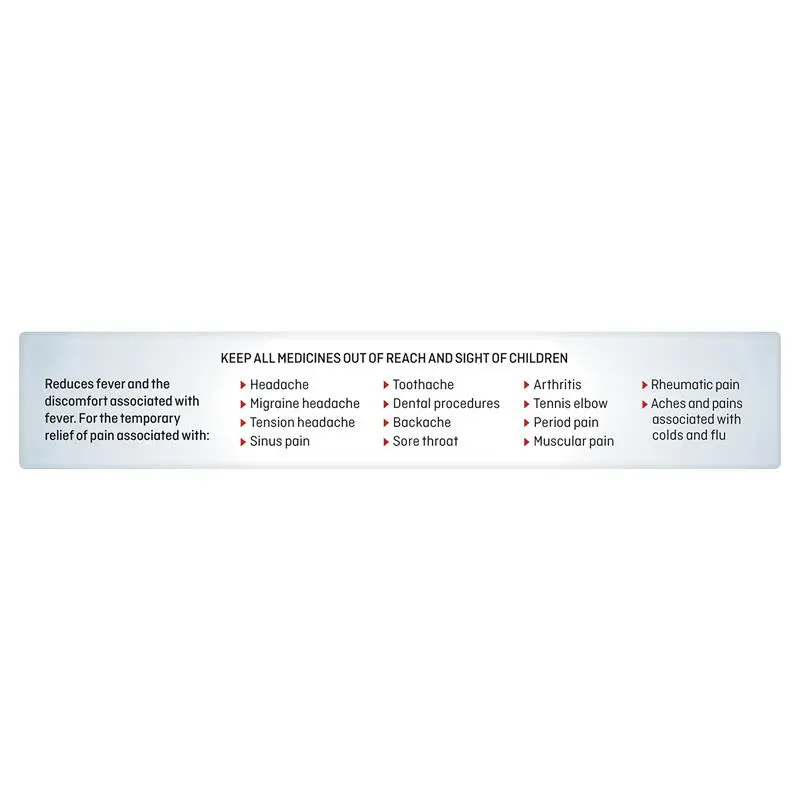 Suitable For: For the temporary relief of pain, including pain where inflammation is present, and the reduction of fever.