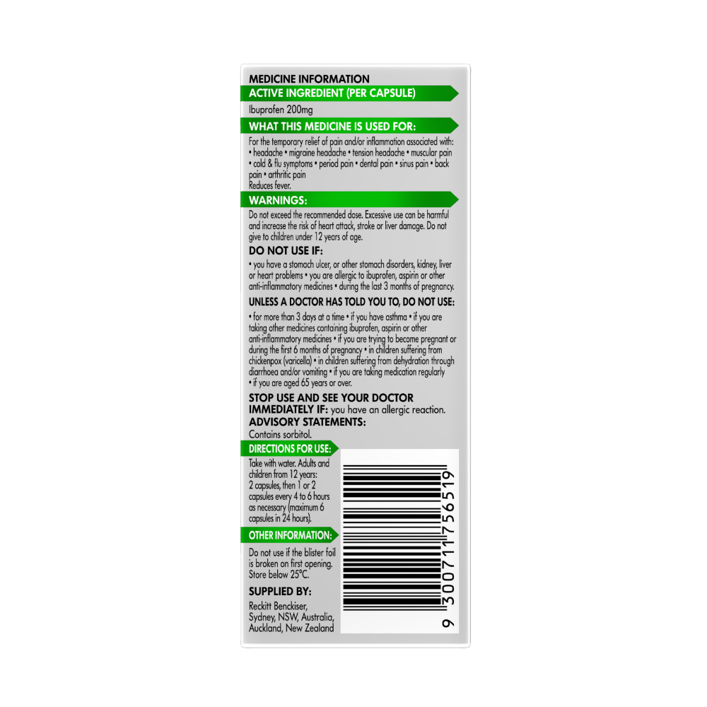 Adults and children from 12 years: 2 capsules, then 1 or 2 capsules every 4 to 6 hours as necessary (maximum 6 capsules in 24 hours).