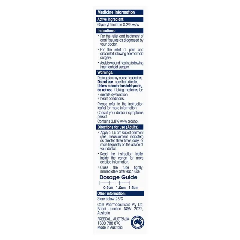 Active Ingredients: Glyceryl Trinitrate 0.2% w/w