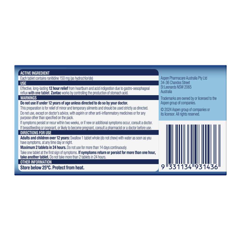 Each tablet contains 150mg Ranitidine (as hydrochloride).